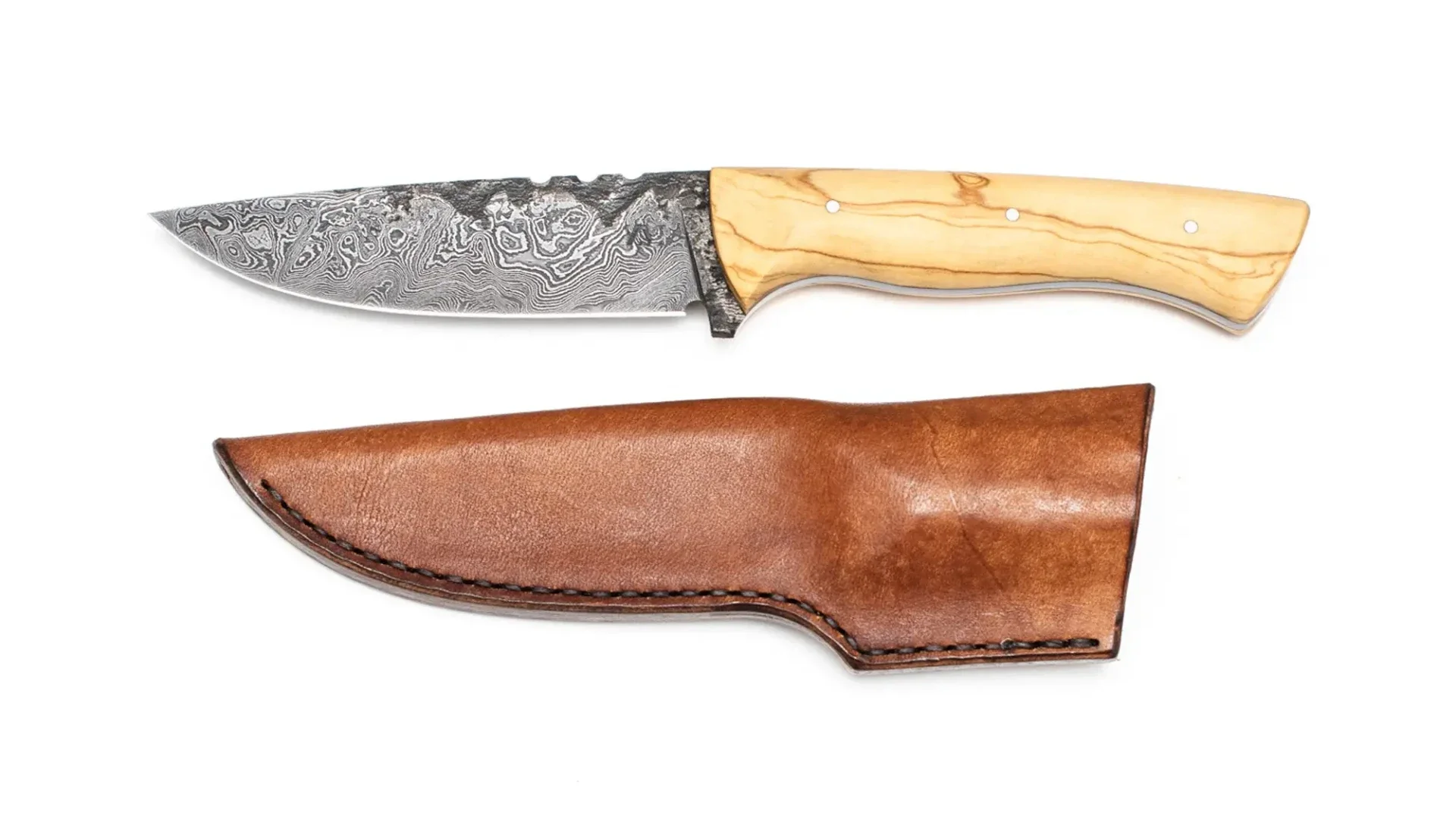 Neben dem Messer sind im Lieferumfang enthalten: eine handgenähte Lederscheide, eine detaillierte Pflegeanleitung sowie das passende Pflegeöl für den Griff und die Klinge.